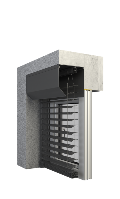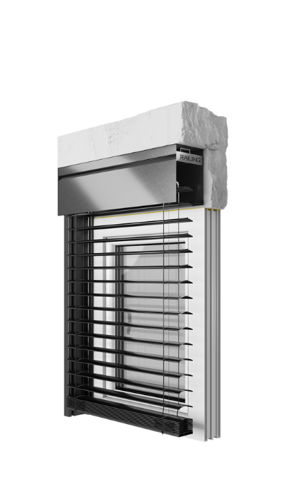 System RAFF-I to żaluzja fasadowa nadprożowa przeznaczona do montażu na elewacji budynku. Rozwiązanie pozwala na estetyczną zabudowę żaluzji bez konieczności ingerencji w nadproże, zapewniając skuteczną ochronę przeciwsłoneczną i pełną kontrolę nad ilością światła we wnętrzu.